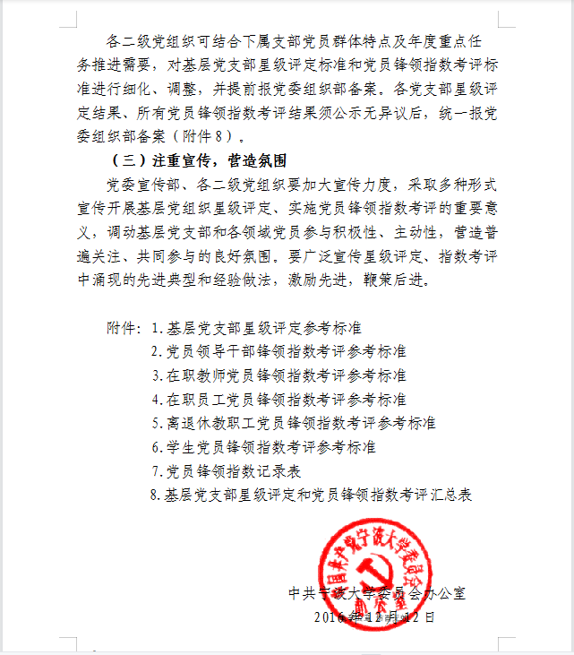 中共樱花小说 委员会办公室关于做好年度基层党组织星级评定、民主评议党员暨党员锋领指数考评的通知
