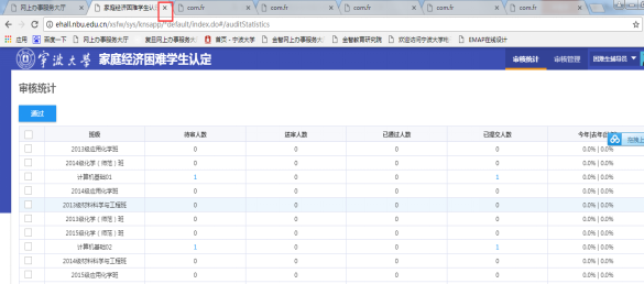 2.点击待审人数、送审人数、通过人数下的蓝色数字跳转至该班级相应审核页面。