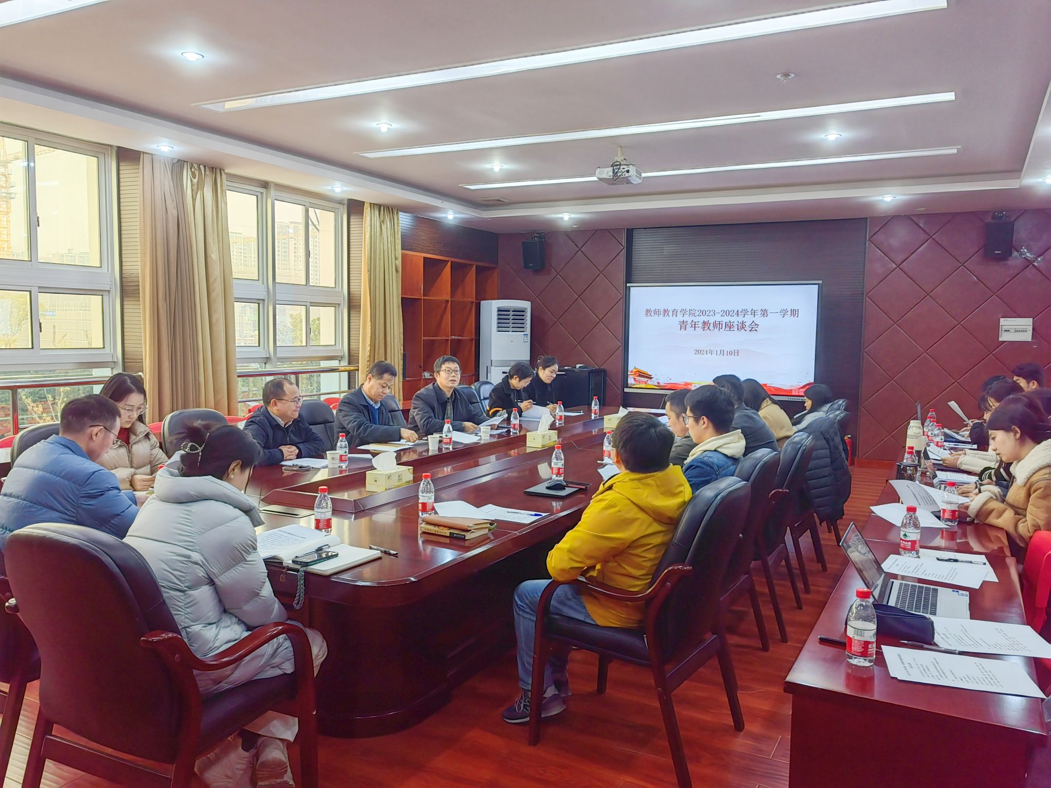 张宝歌院长作总结发言。他表示,召开此次会议不仅是为了了解青年教师们入职以来的感受,更是为了解决老师们面临的一些需要学院帮助的问题。他强调,作为青年教师要适应身份转变,既要适应工作环境,也要适应工作要求,并向全体青年教师提出了四点要求:一要熟知学校的工作要求,仔细研读学校相关制度文件;二要积极参加学院活动,有些问题可以在团队力量的相互鼓励与扶持下迎刃而解;三要明确未来几年的考核任务,只有清楚具体的赋分内容才能对症下药;四要充分利用学院学校各类软件硬件资源,同时把握好学院现有的师资力量。最后,张宝歌再次感谢青年教师们对学院的正面评价与认可,学院会继续听取各方意见建议,逐步优化各方面工作。