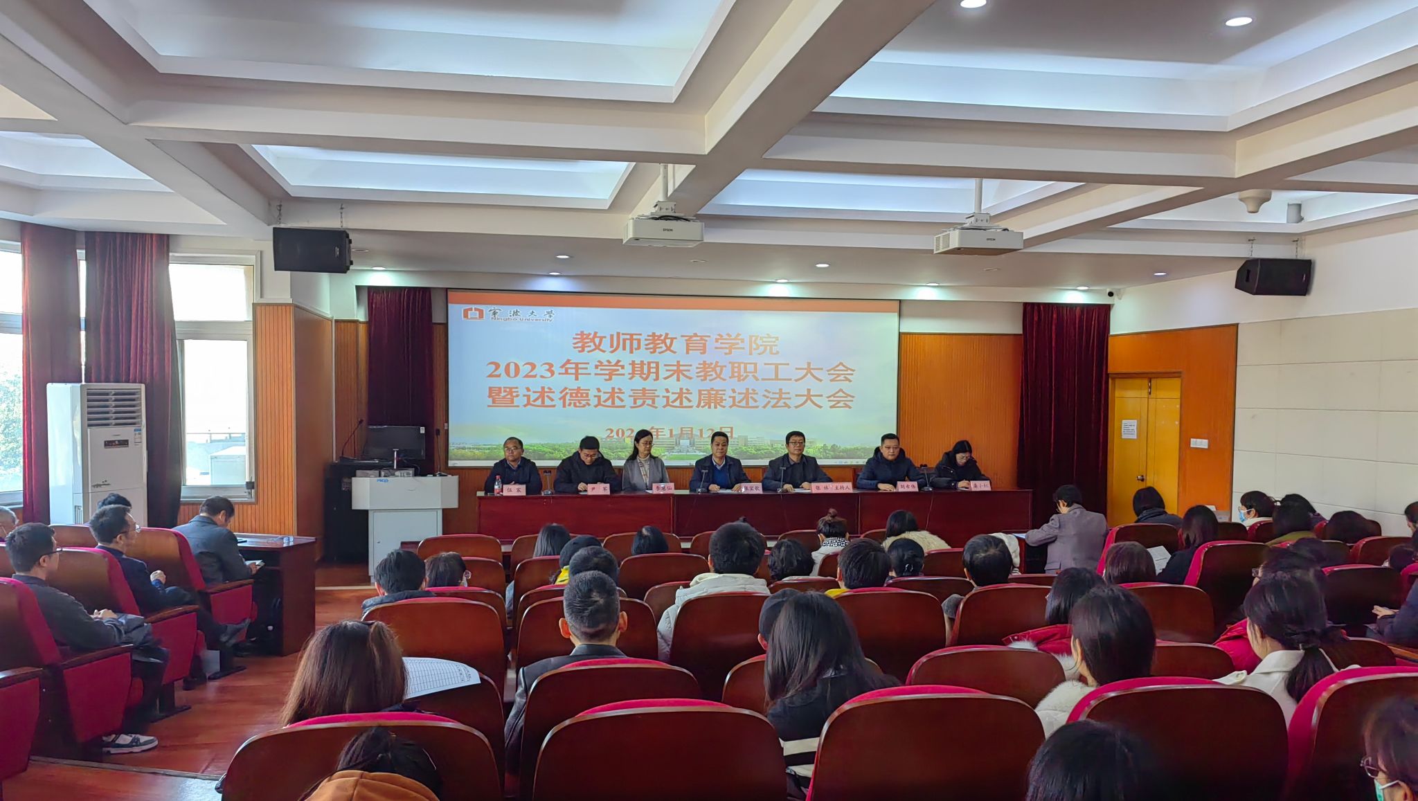 2023年学期末教职工大会暨述德述责述廉述法大会在实验楼211会议室举行。会议由院党委书记张林主持,院党政班子成员及全体教职工参会。