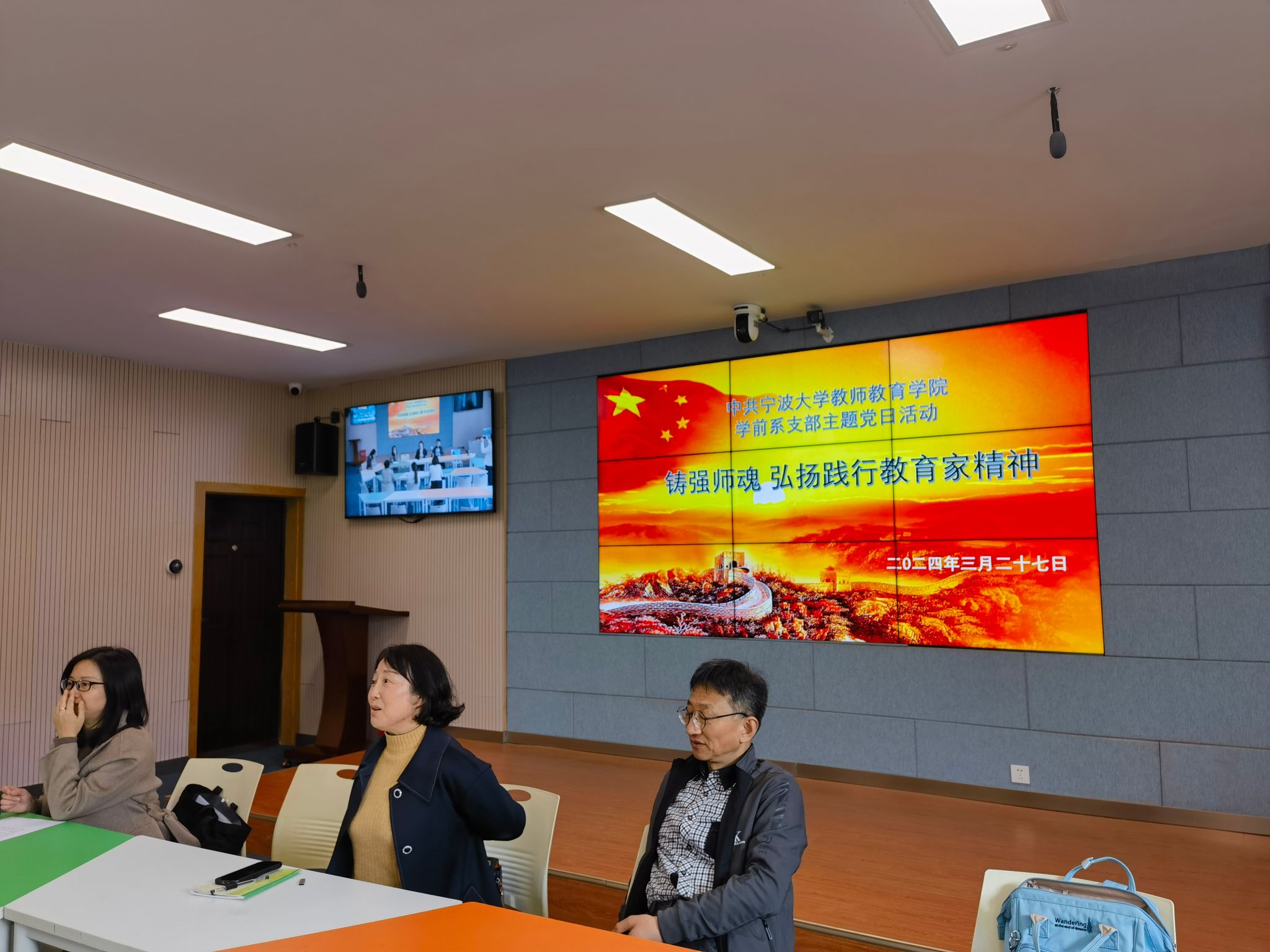最后支部书记汪洁萍做总结:教育家精神的提出,呼应教师“为党育人、为国育才”的初心使命、“躬耕教坛、强国有我”的志向抱负。这是一项重大的理论创新,也是建设教育强国的历史选择。作为高校党员教师,应继续用社会主义核心价值观塑造精神世界,增强传承红色基因的思想自觉和行动自觉,在涵养师德师风中弘扬教育家精神,学习传承老一辈学者的为人之道、治学精神和厚重品格,增强责任意识和担当意识;落实立德树人根本任务,扎根中国大地办教育,让自己成长为高素质专业化教师,为实现中华民族伟大复兴贡献自己的力量。