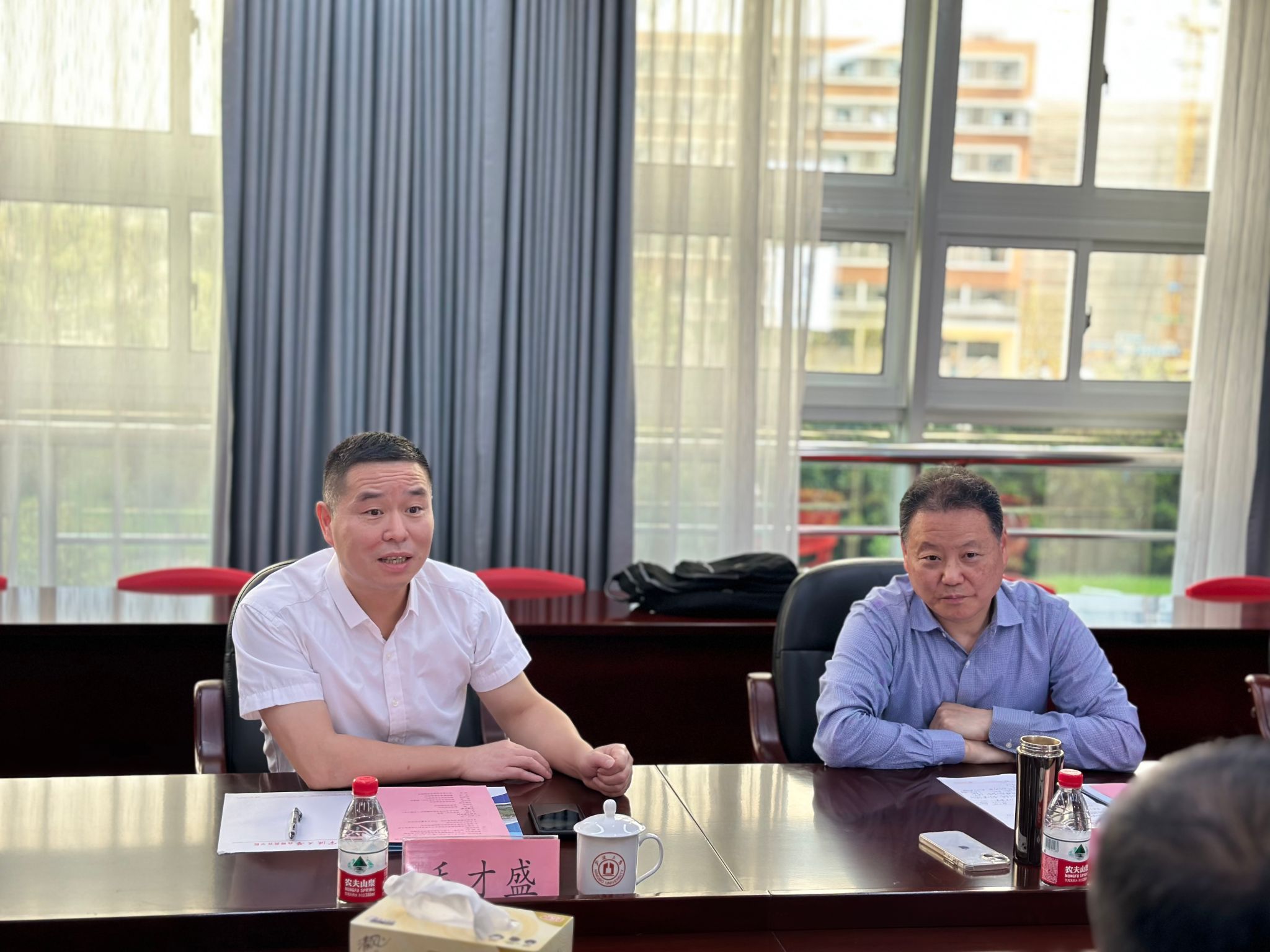 调研座谈。宁波市教育局局长毛才盛、国际教育交流合作处副处长樊园以及樱花小说