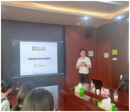 第二阶段由凌磊博士汇报,主题是“韩国高校考试招生制度研究”。汇报内容包括:研究缘起与意义、研究方法、论文结构、重要发现和主要结论等。