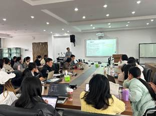 两位博士报告完之后,进入提问环节。与会教师与学生纷纷踊跃发言,教师们就报告听取过程中遇到的疑惑之处展开深入交流,比如评价赋分标准如何整合、信效度检验等,现场气氛热烈。学生们就各自在论文撰写过程中遇到的各种具体问题进行提问,两位教师做了积极解答,为学生们提供了诸多有益的思路与借鉴。