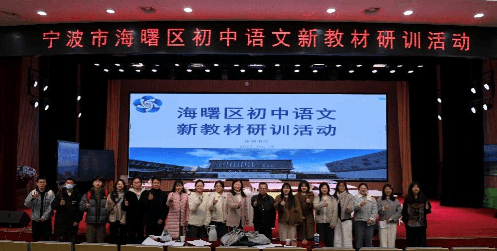 冯铁山教授及其研究生团队走进海曙区储能学校丽园书院,参加区初中语文新教材教学研训活动。主要环节有:课堂教学观摩、教研员授课、专家讲座。