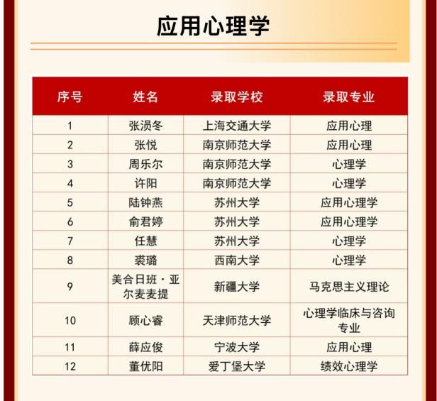 接着,心理学系教师党支部书记李宇老师带领副系主任刘方老师、21级班主任陈文老师,以及22级班主任代表段继鹏老师于教育楼413向2024届薛应俊等12位成功考入国内外高校、即将攻读硕士研究生的应用心理学本科生表示诚挚的祝福与殷切的期望。