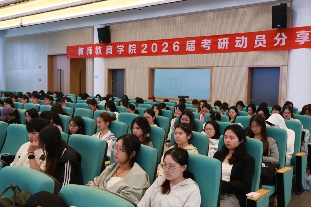 院长张宝歌以“为何考研”为引,指出学历提升是应对就业挑战、响应国家对高层次人才需求的重要途径。学院副院长尹军作“全球化视野下的深造选择”主题分享,主要涉及国际化深造途径,包含短期暑期游学、出国进修、申请国(境)外硕士等事项。学院党委副书记龚小虹介绍了关于考研专项工作的护航政策。学院学工办陈丽娜老师讲解当前考研政策,详细介绍“研究生推免”“研究生支教团”等升学途径。心理学系主任兼心理学系教师党支部书记李宇老师从坚定信念、提升信心、共筑助力、赋能行动四个方面寄语考研学子,并用习近平总书记提出的“青春因磨砺而出彩,人生因奋斗而升华”与全体学子共勉,引导学生将个人发展与党和国家心理健康体系建设需求同频共振。