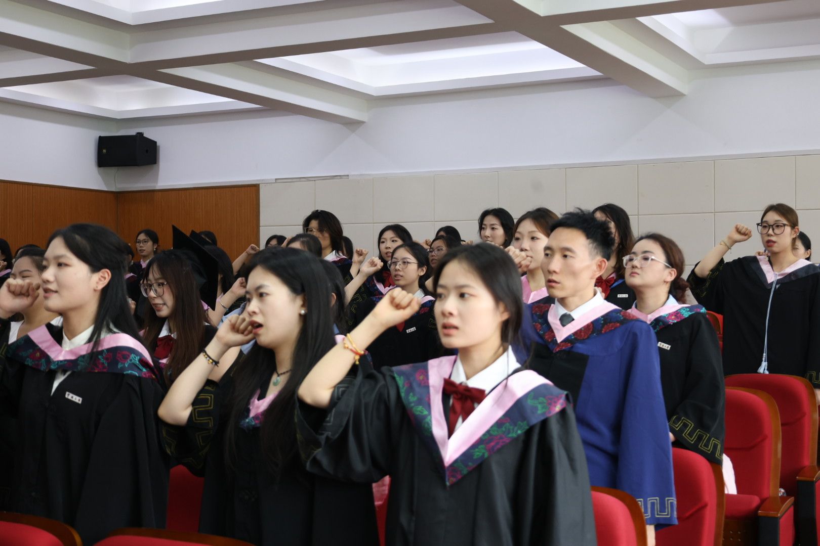 讲课结束后,全体“准教师”进行了“师德规范宣誓”:“我志愿成为一名光荣的人民教师,忠诚教育事业,履行教师职责,贯彻党的教育方针,落实立德树人根本任务……”即将走上教师岗位的毕业生们身着学士服在此宣誓同一个梦想。
