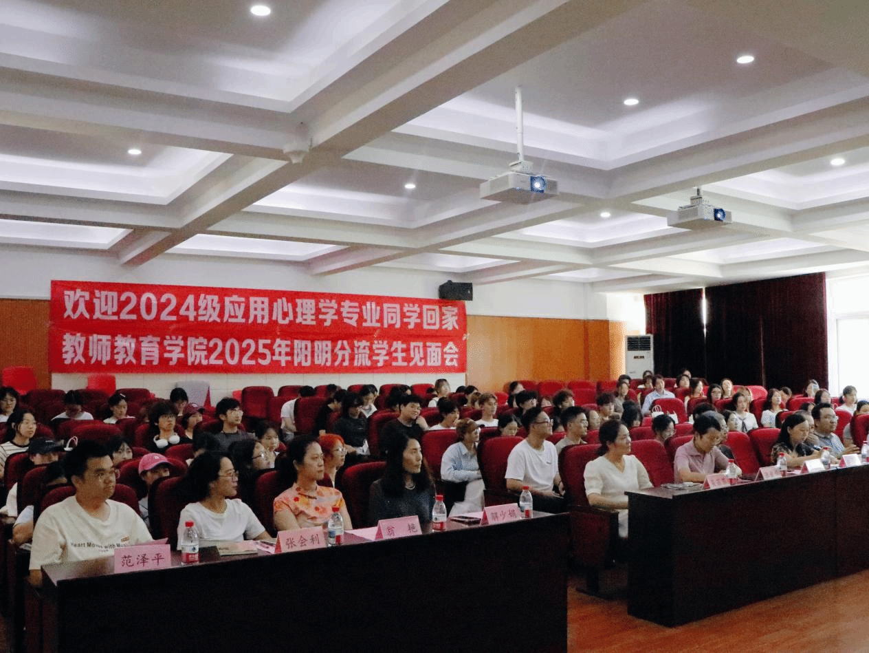 在教育楼211隆重举行2025年阳明分流学生见面会,热烈欢迎2024级应用心理学专业的76名学生正式融入师院大家庭。