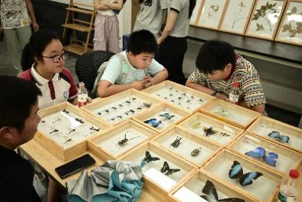 土木工程与地理环境学院的岩矿土壤植被水文等4个实验室,大家在指导老师的带领下走进地质陈列室、流域生态室、土壤动物室和植物标本室,通过触摸矿物标本、用显微镜观察土壤生物与淡水藻类等方式,近距离探索地球的地质历史、植物多样性和生态系统的奥秘。让孩子们惊喜的是,专业的大学教授亲自给他们上课。