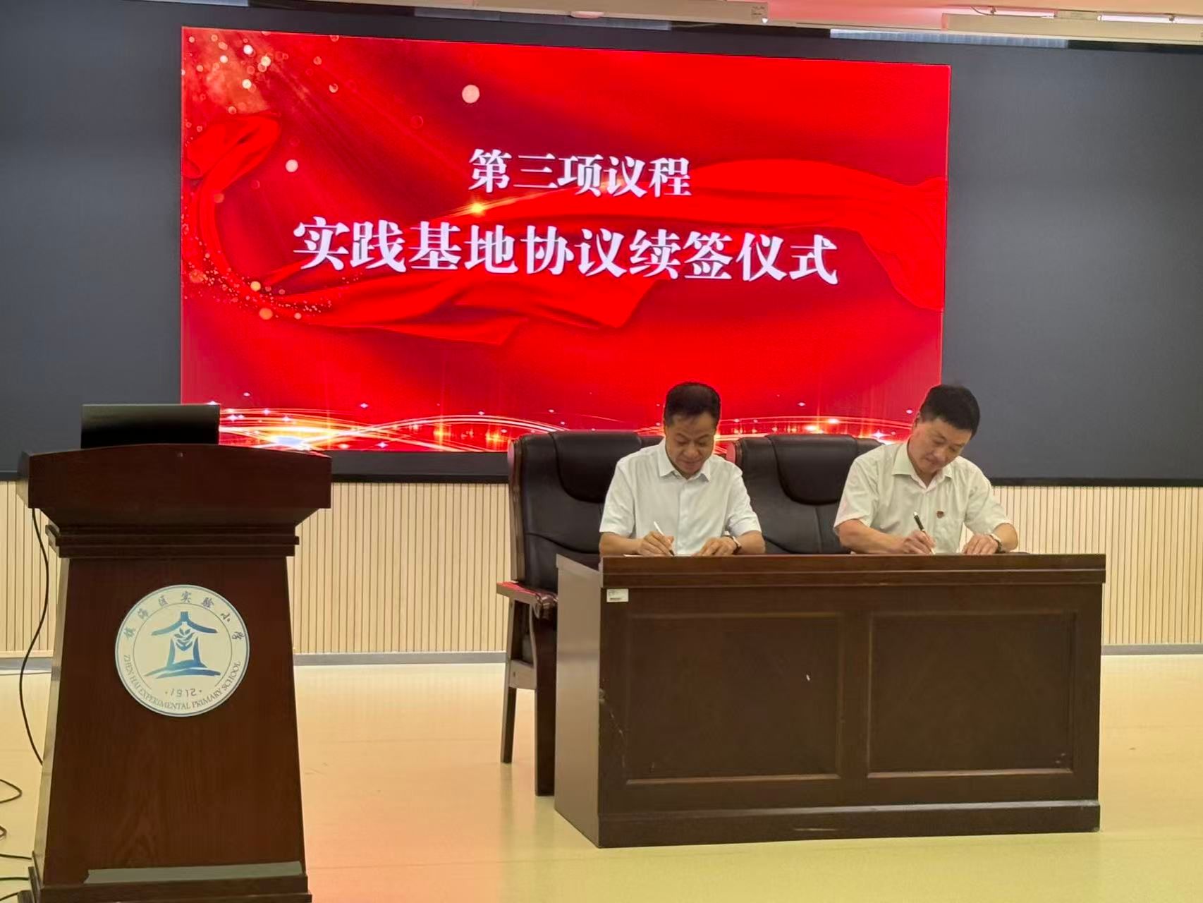 与镇海区实验小学长期以来的友好合作关系,并对即将入驻的教育硕士实习生提出殷切期许。随后,张宝歌院长与韩亚斌书记续签了“樱花小说