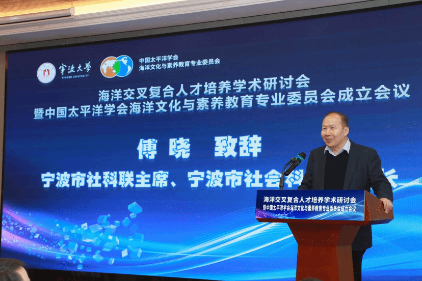 宁波市社科联主席、宁波市社会科学院院长傅晓在致辞中指出,宁波作为 “海上丝绸之路” 始发港,拥有深厚海洋文化底蕴与资源优势,但海洋文化研究转化、全民海洋素养提升仍是短板。他期待以专委会成立为契机,凝聚学界力量,深化海洋教育研究,校地协同助力海洋强国建设,推动形成政府引导、学界支撑、社会参与的海洋文化与素养教育新格局。