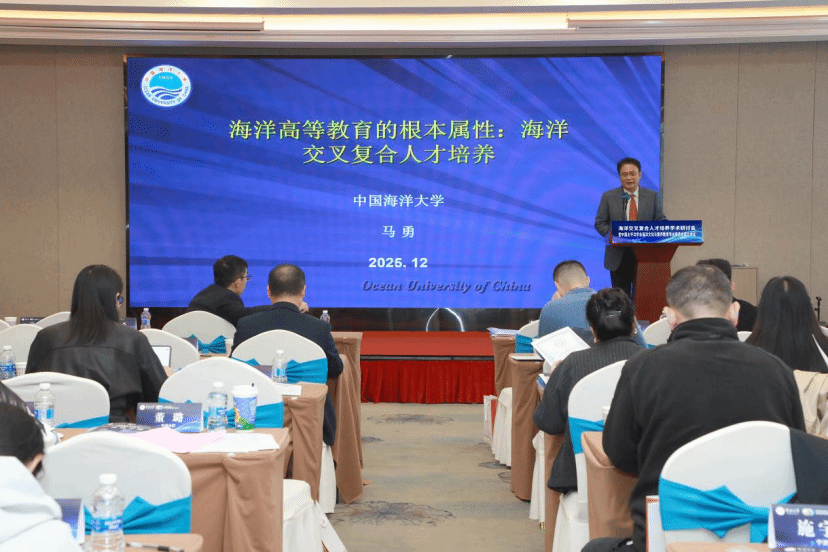 中国海洋大学马勇教授作《海洋高等教育的根本属性:海洋交叉复合人才培养》主旨报告,报告强调,需以科教融合为导向,通过专业教育与通识教育结合,开设跨学科课程、组织实践体验等方式,面向涉海与非涉海专业学生培养海洋交叉复合人才,助力海洋强国建设。