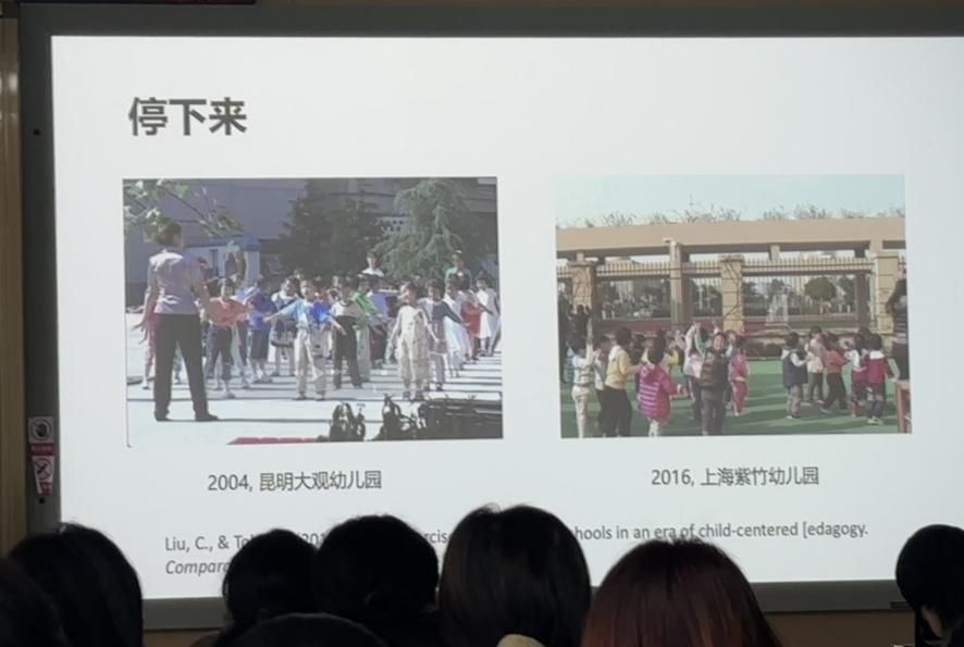 在揭示儿童成长路径因文化而异后,刘畅博士 从人类学的视角出发,对幼儿园研究进行了简要的介绍。 她首先 引用了 一项跨越中、日、美三国的视频民族志研究,探讨了不同文化背景下幼儿教育的异同,并借助历史维度,呈现了二十年间教育实践在横向对比与纵向变迁中的生动样貌。随后, 刘畅 博士指出,幼儿园也是观察幼儿道德发展的重要窗口。她以《Between Self And Community》中对韩国幼儿园的研究为例 , 阐释了集体主义传统与鼓励个性表达的现代教育理念之间存在的 矛盾 ,折射出文化观念对教育实践深层 的 影响。除儿童外,教师同样是值得关注的研究主体。刘 畅 博士简要分享了关于新手与专家型教师在教学行为、身体语言等方面的比较研究,揭示教学经验如何内化为教育智慧。最后,她将视角转向儿童自身,强调“同伴文化”研究的重要性,倡导 以儿童视角进行观察 ,理解其社交世界与意义建构的过程。
