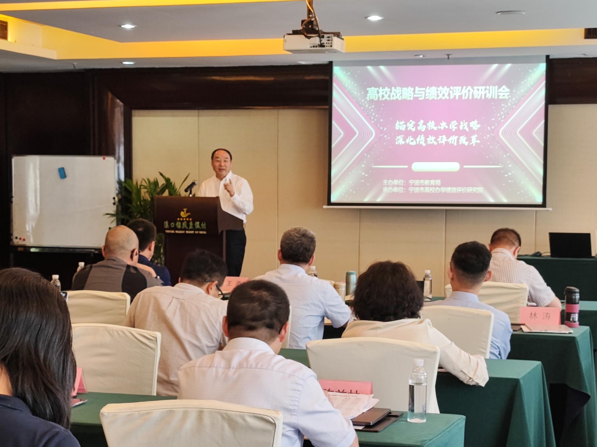 教育评价研究院)承办的宁波市高校战略与绩效评价研训会在宁波召开,会议主题为“锚定高校办学战略,深化绩效评价改革”。宁波市教育局领导,高校发展规划处、质量评估办公室、人事处等行政管理部门负责人、高校办学绩效评价研究院有关人员等参加了此次研训。