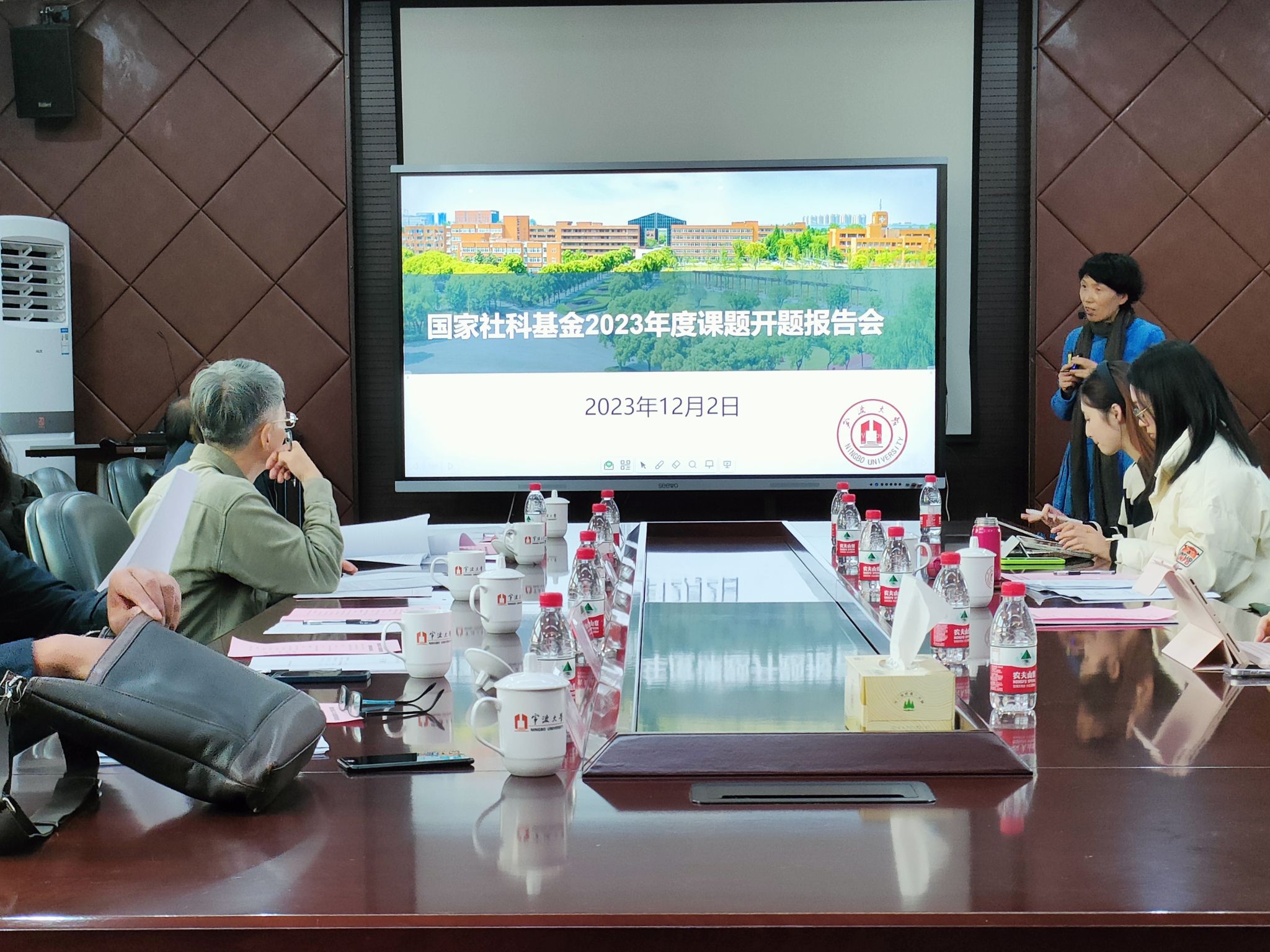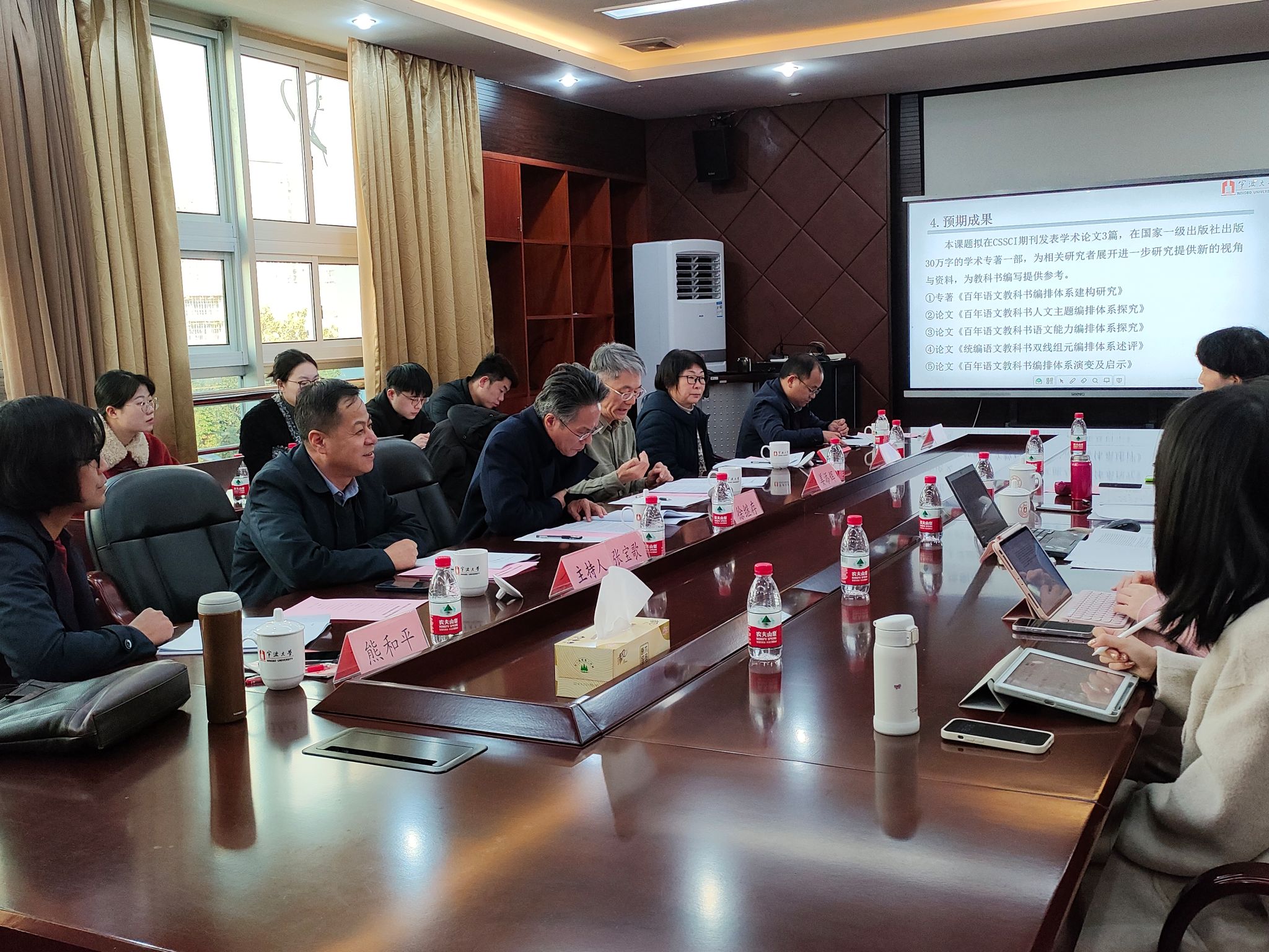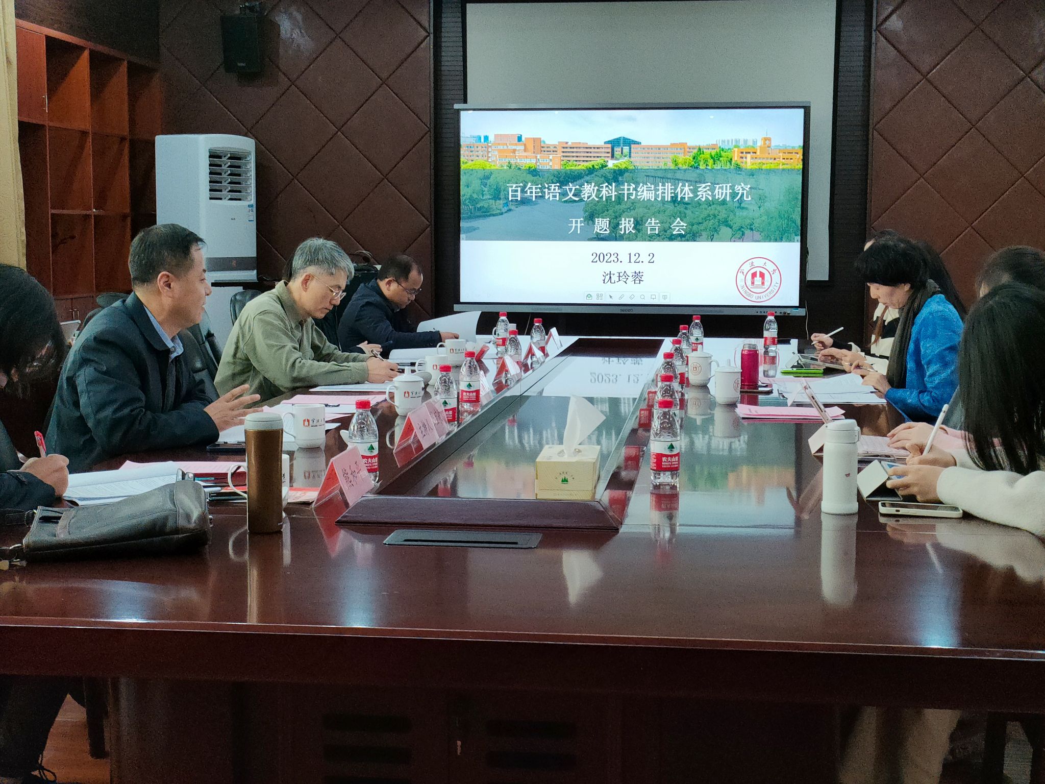 院长张宝歌教授主持。沈玲蓉教授进行了“百年语文教科书编排体系研究”(课题批准号:BHA230138)开题汇报,吴小鸥教授进行了“百年中国教科书与中华民族共同体意识建构研究”(课题批准号:BOA230221)的开题汇报。