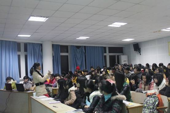 在实验楼313教室举办"大学里应该做点什么?——职场准备从现在开始”就业指导讲座。全球职业生涯规划师、国家职业指导师、心理咨询师、校就业指导中心主任王洪影老师作了精彩演讲。