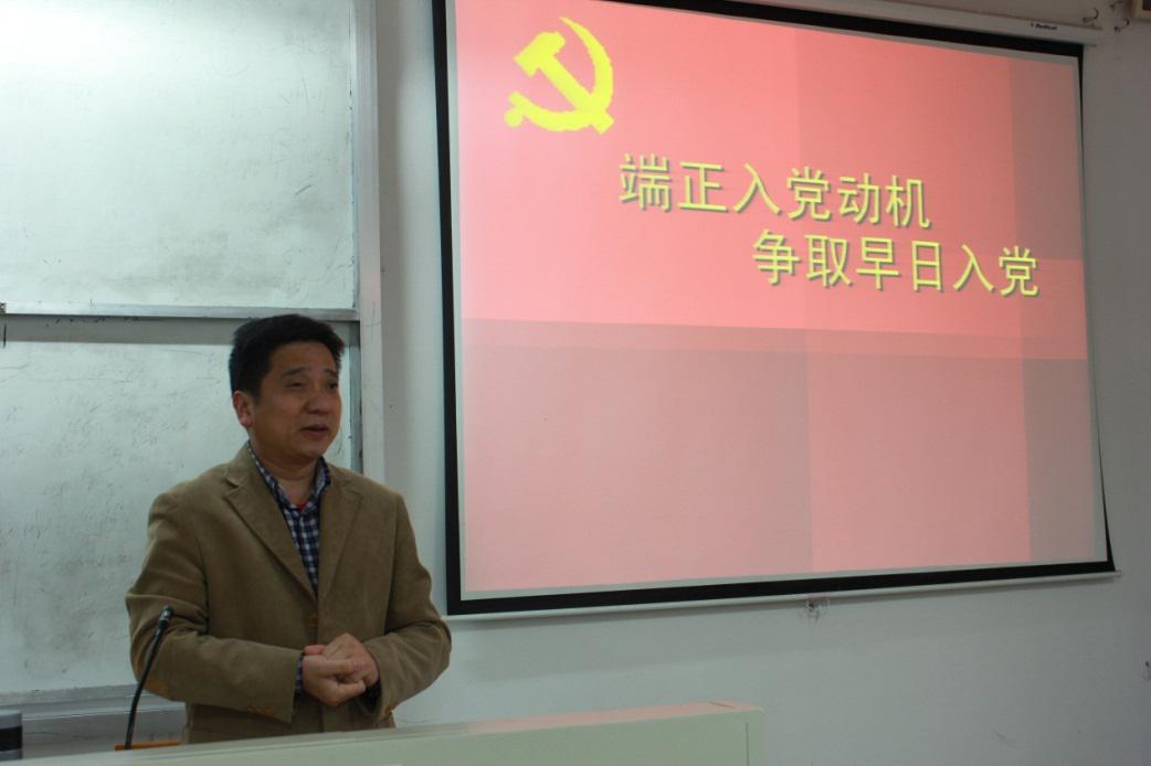 王存宽老师对入党动机进行了系统的讲解,他将入党动机分为“信仰型”、“争优型”、“模糊型”和“功利型”四种,并通过深入浅出的举例引导大家认识自己的入党动机,端正自己的入党动机。王存宽老师指出“正确的入党动机是为了全心全意为人民服务,为了早日实现共产主义”,他倡导学员们应该时刻以党员的身份要求自己 ,坚定共产主义信念,争取早日入党。