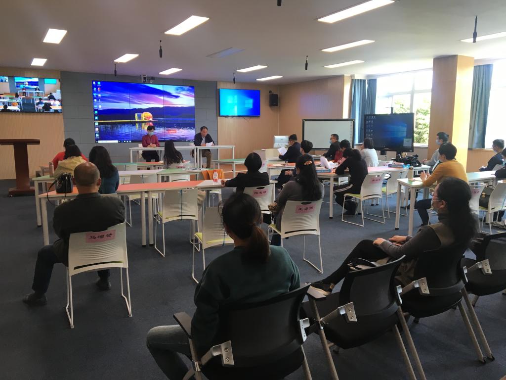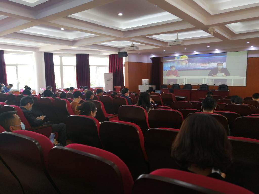 召开疫情防控期间第一次全体教职工大会。会议以分会场视频转播的形式进行,学院精心进行了会前安排,一个主会场和两个分会场分别贴上名牌,座位绑线隔开。学院党委书记方莹芬主持会议。