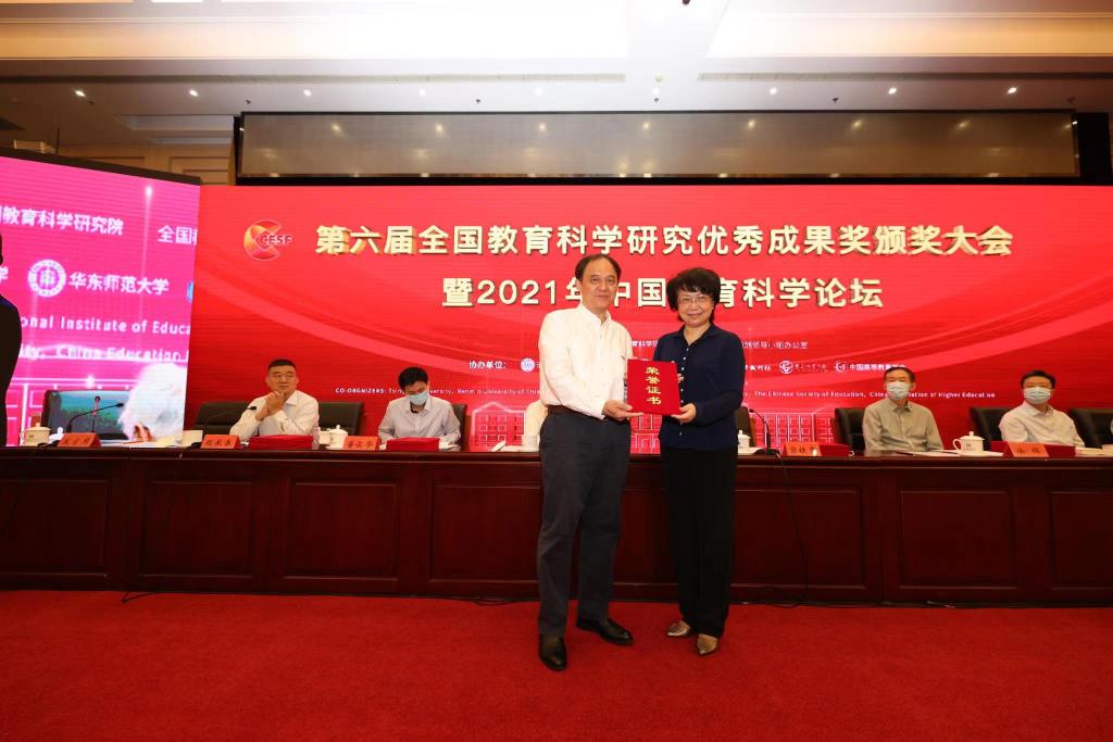 贺国庆教授的论文《美国研究型大学本科教育的百年变迁与省思》荣获一等奖、邵光华教授的著作《教师课改阻抗及消解策略研究》荣获二等奖。