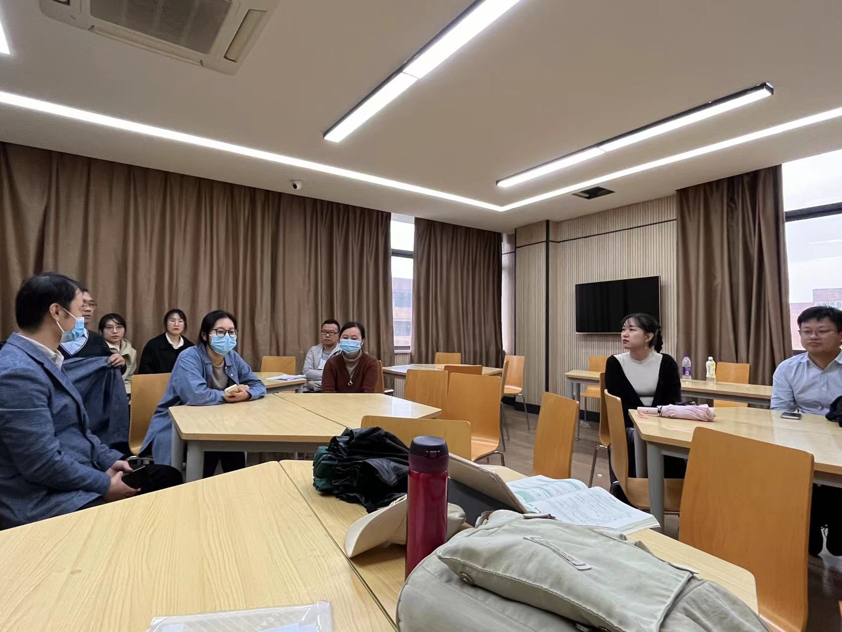 课后,听课教师就听课内容与感受展开了研讨。焦岚老师课程内容生动有趣、课堂氛围轻松活跃、讲授内容娴熟,在场督导给予了充分肯定,青年教师深受启发!