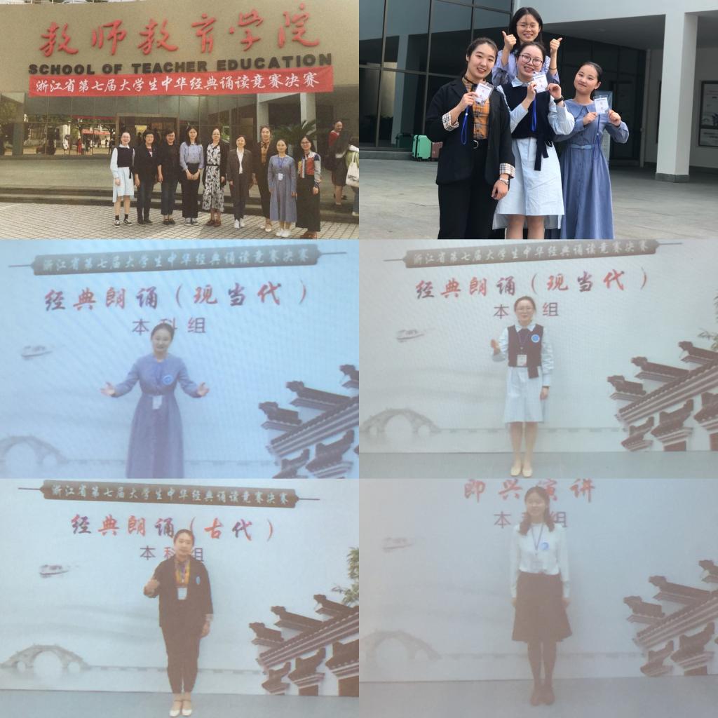 10月19日-20日,由浙江省大学生科技竞赛委员会主办的“浙江省第七届大学生中华经典诵读竞赛”决赛在绍兴文理学院举行,经过“中华经典朗诵”、“即兴演讲”与“回答问题”三个环节的角逐,我校8位参赛选手共获得一等奖1项、二等奖3项、三等奖4项的佳绩。