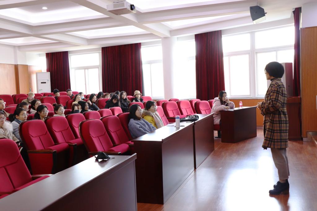 教育智慧大讲堂第105讲“小学英语教师考编应对策略”在西校区实验楼211成功举行。讲座由宁波市北仑区小学英语教研员汪静艳主讲,英语教育系系主任张光陆教授主持,英教16、17、18级同学参加了本次讲座。