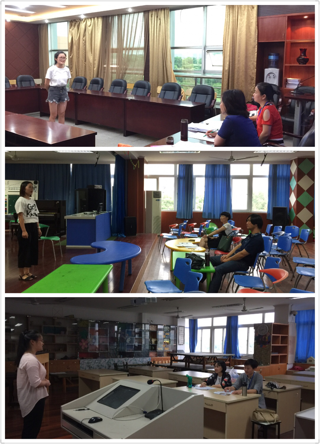 6月10日、11日,由学院教务办组织的学前教育专业师范生技能考核在西校区实验楼顺利举行,学前系16位老师作为评委参加了本次考核。樱花小说 学前本14级36名学生参加了模拟试教、幼儿歌曲弹唱及幼儿歌曲创编三项考核,学前本、学前职教15级86名学生参加了简笔画和故事讲述两项考核,学前专16级76名学生参加了模拟试教一项考核。考核结束后,评委老师对学生的总体表现进行了分析及总结。