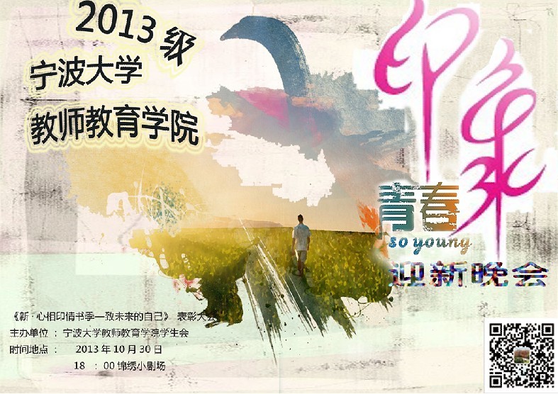 的温暖,我们将举办以“印象·青春”为主题的迎新晚会。通过这次活动。来丰富学院的人文气息,发扬师院文化,展现师院风采。加强学生,班级间的文化交流,加强班级凝聚力,使各个班级的风采得以更好地展示。以文化活动的形式让同学们更好更快的融入大学生活,