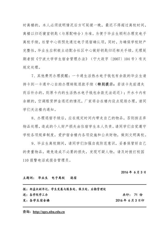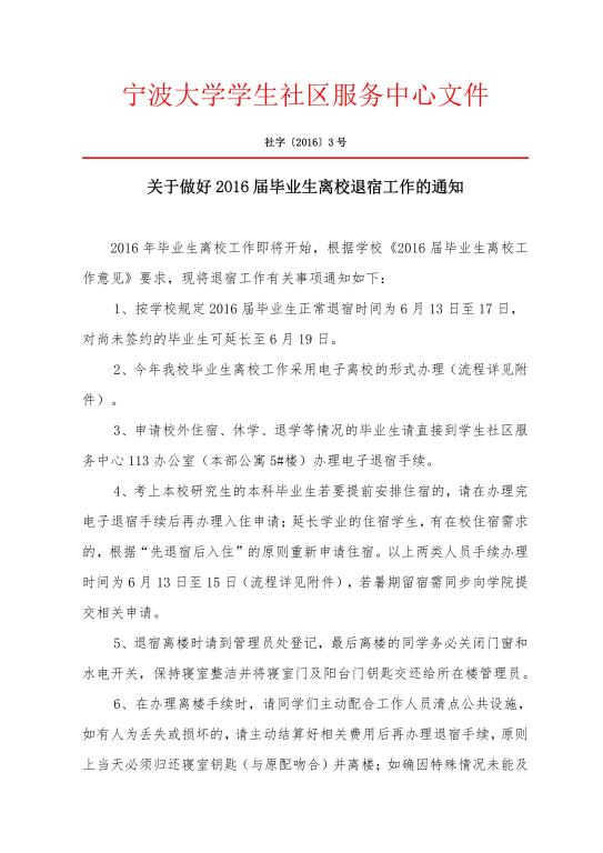关于做好2016届毕业生离校退宿工作的通知