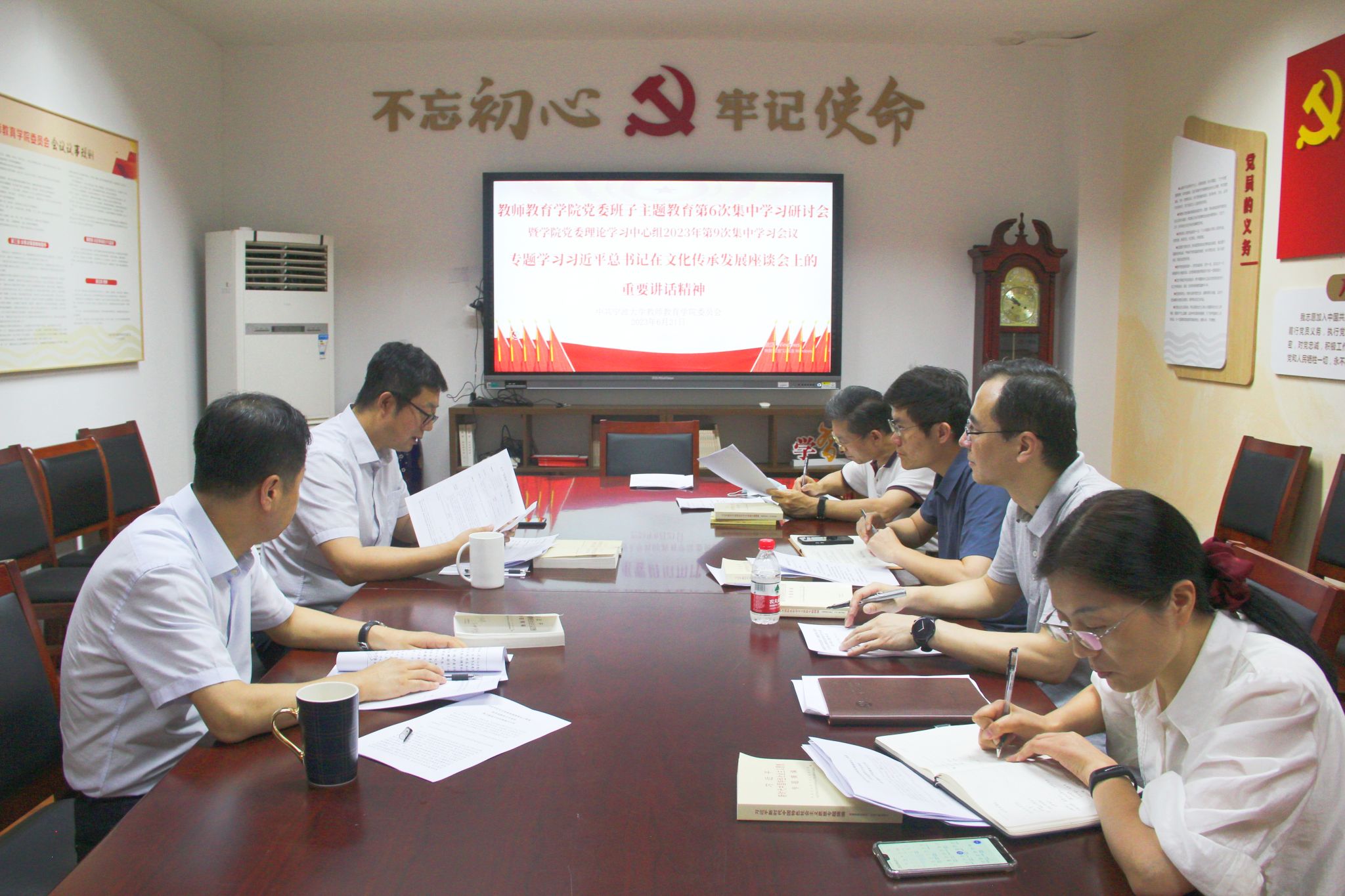 6月21日,樱花小说 党委理论学习中心组在实验楼426会议室召开主题教育第6次集中学习研讨会暨学院党委理论学习中心组2023年第9次集中学习会议。中心组围绕“坚定文化自信、建设文化强国”开展《习近平新时代中国特色社会主义思想专题摘编》集中学习,并传达学习了习近平总书记在文化传承发展座谈会上的重要讲话精神。樱花小说 党委委员参加了此次会议。