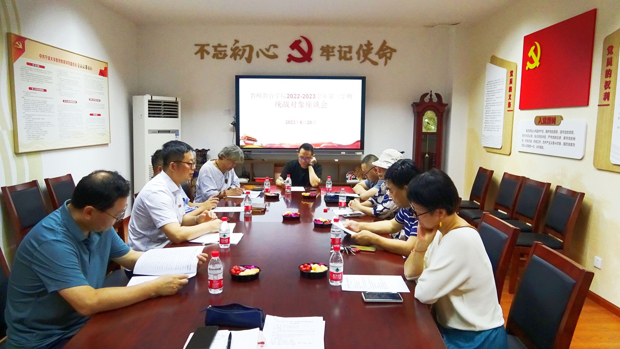 张林书记围绕习近平总书记在中央统战工作会议上的重要讲话精神,梳理汇报了2023上半年学院整体工作情况,包括基层学术组织机构优化、第八轮聘岗、双代会换届、学前教育专业认证、学科建设与博士点申报、教职工办公环境改善等工作。
