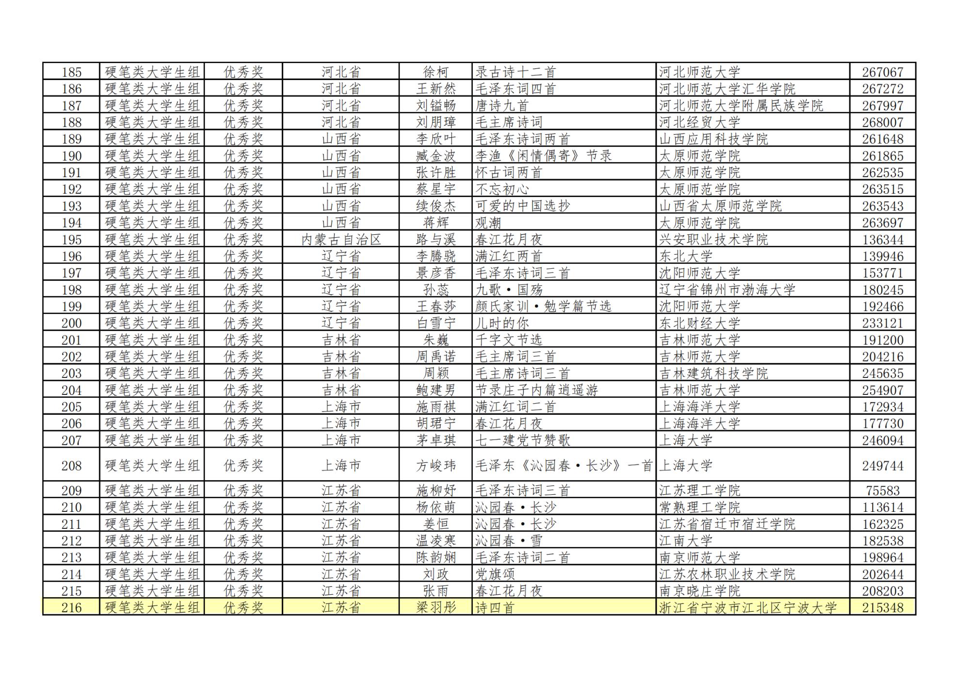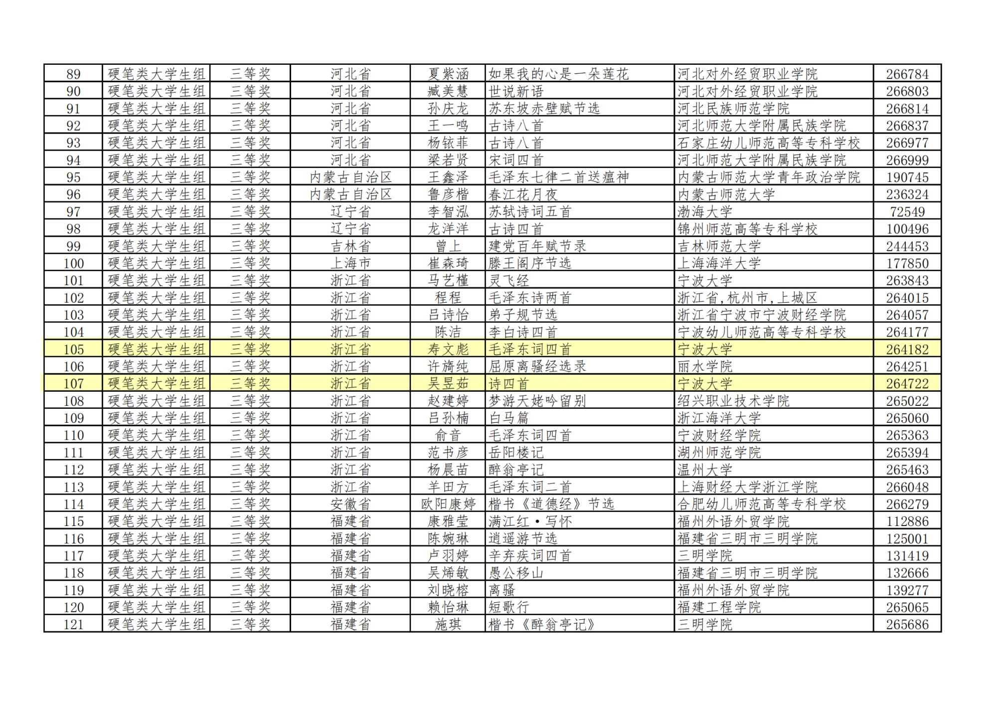 4名学生在全国数万件参赛作品中脱颖而出,在评选出的大学生组硬笔书法一、二、三等奖和优秀奖共313人中(浙江高校占27人),樱花小说