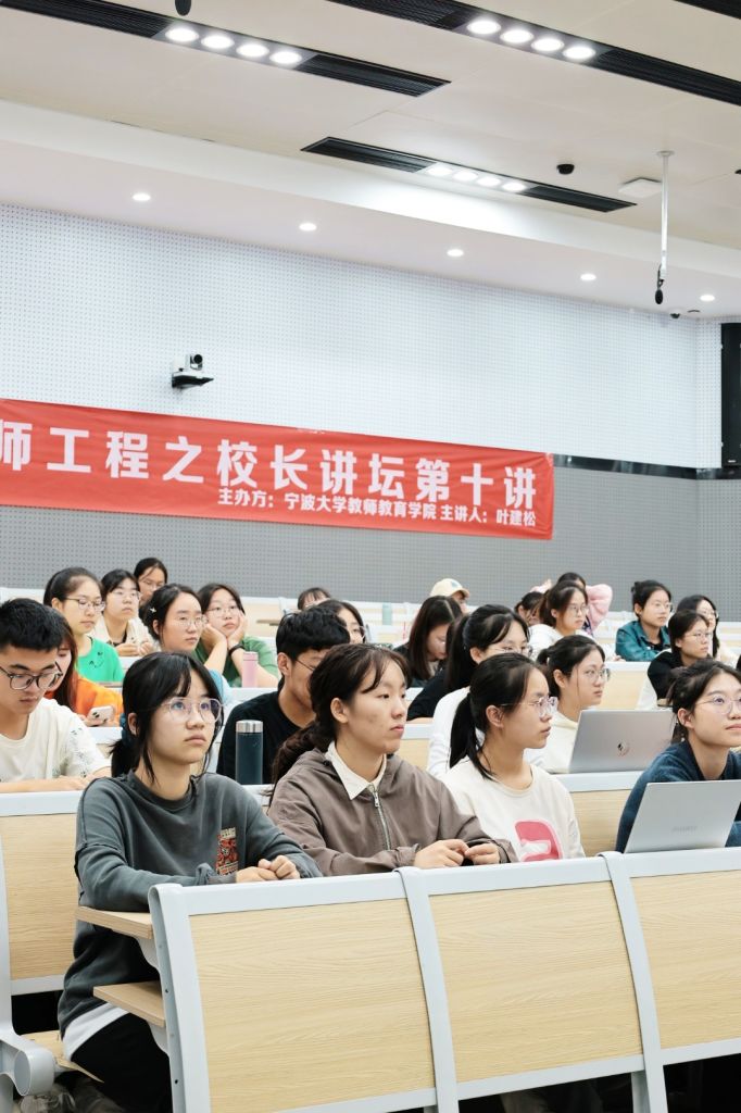 于东校区阶一教室举行春雨书院名师工程之校长论坛。校长论坛第十讲邀请到了叶建松校长,他以“成长型思维:拥抱幸福教育生活”为主题,为同学们分享自己的心得感悟。